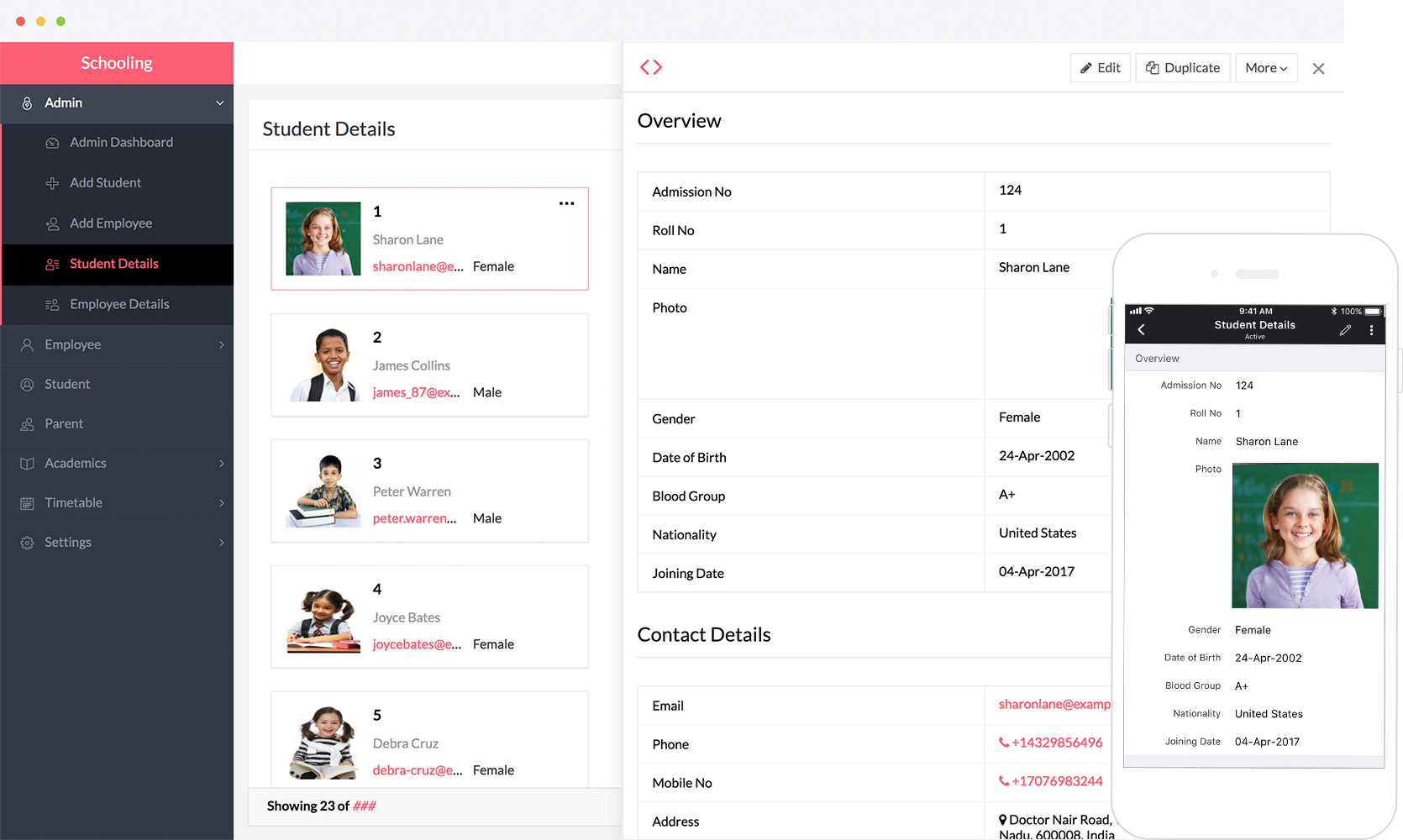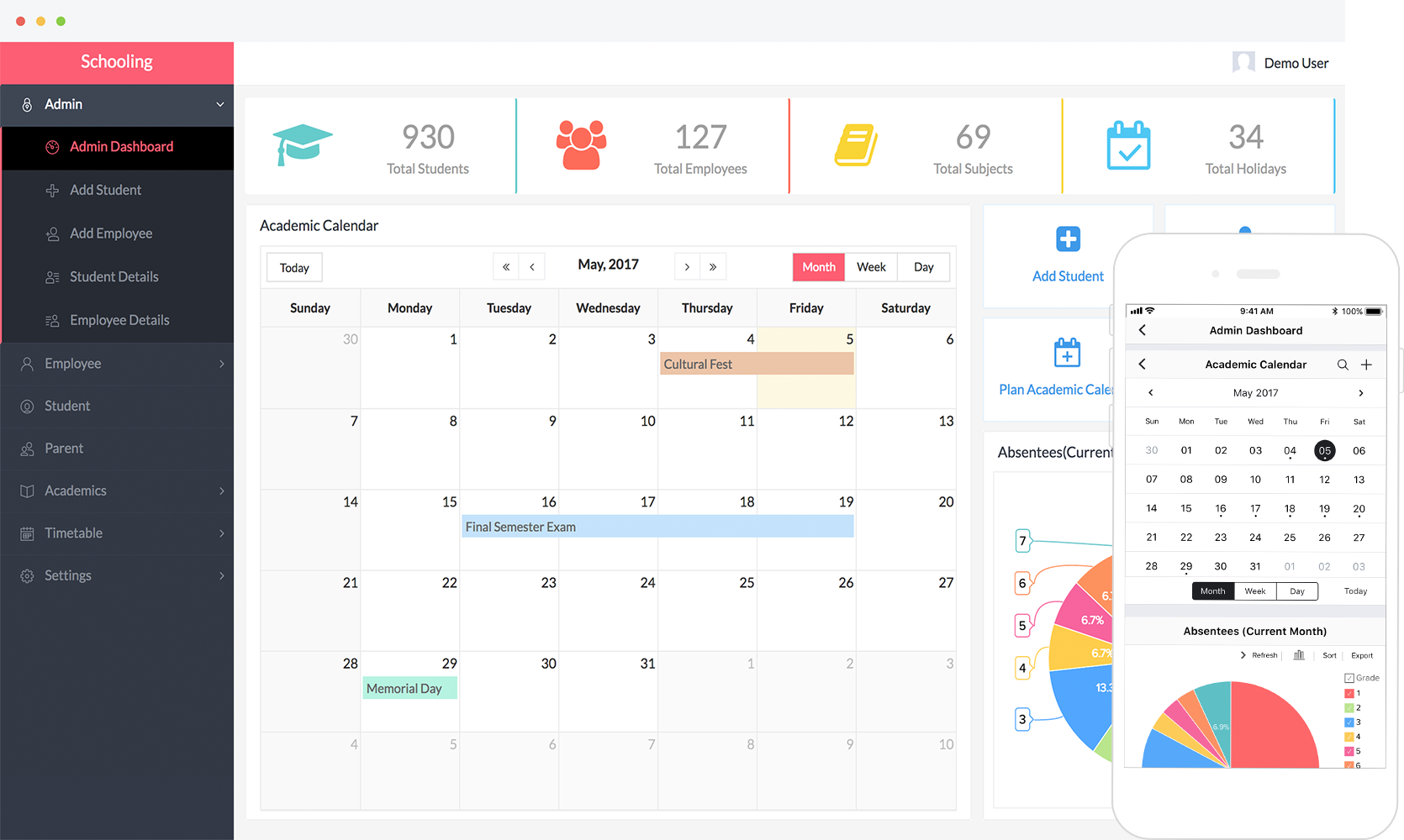 All you need is one click to manage the entire portfolio and organisation. Manage students, staff and teachers from one place. Plan out the annual academic schedule, calendar, customize time tables and more. -